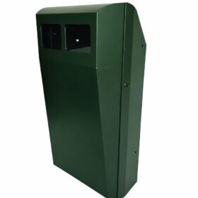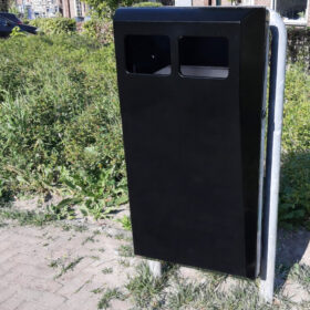 De Afvalbak Falcon is een mooie afvalbak die op iedere locatie kan worden geplaatst. De afvalbak kan tegen de muur worden geplaatst, tegen hekwerk of zoals op de foto’s te zien is in een beugel. De afvalbak is voorzien van een lichtgewicht aluminium binnenbak die makkelijk te legen is. De afvalbak is verkrijgbaar met een inhoud van 55, 75, 100 of 125 liter.